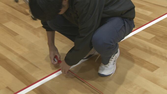くまさんBabyZ 坂本徹平選手「カバディのコートを作ってます。マイナー競技なのでもともと体育館に引いてある線とかがないので」