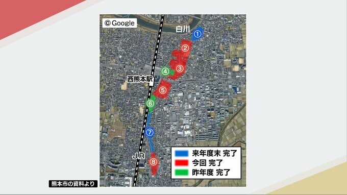 一方で残る(1)(7)の2つの区域は、地下水の水位が下がりにくい場所で、追加工事を行ったため、今後、経過観察をして異常が見られなければ、2025年度末までに工事を終える見通しです。