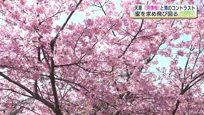 熊本県天草市では早咲きのサクラとして知られる河津桜(かわづざくら)が鮮やかに咲き誇っています。