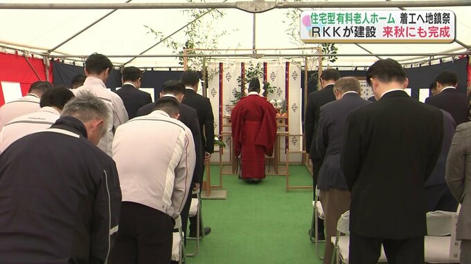 RKK近くの熊本市中央区山崎町の建設予定地では地鎮祭が行われ、関係者約20人が工事の安全を祈りました。約1200平方メートルに建設する住宅型有料老人ホームは、9階建てで67室を設ける予定です。