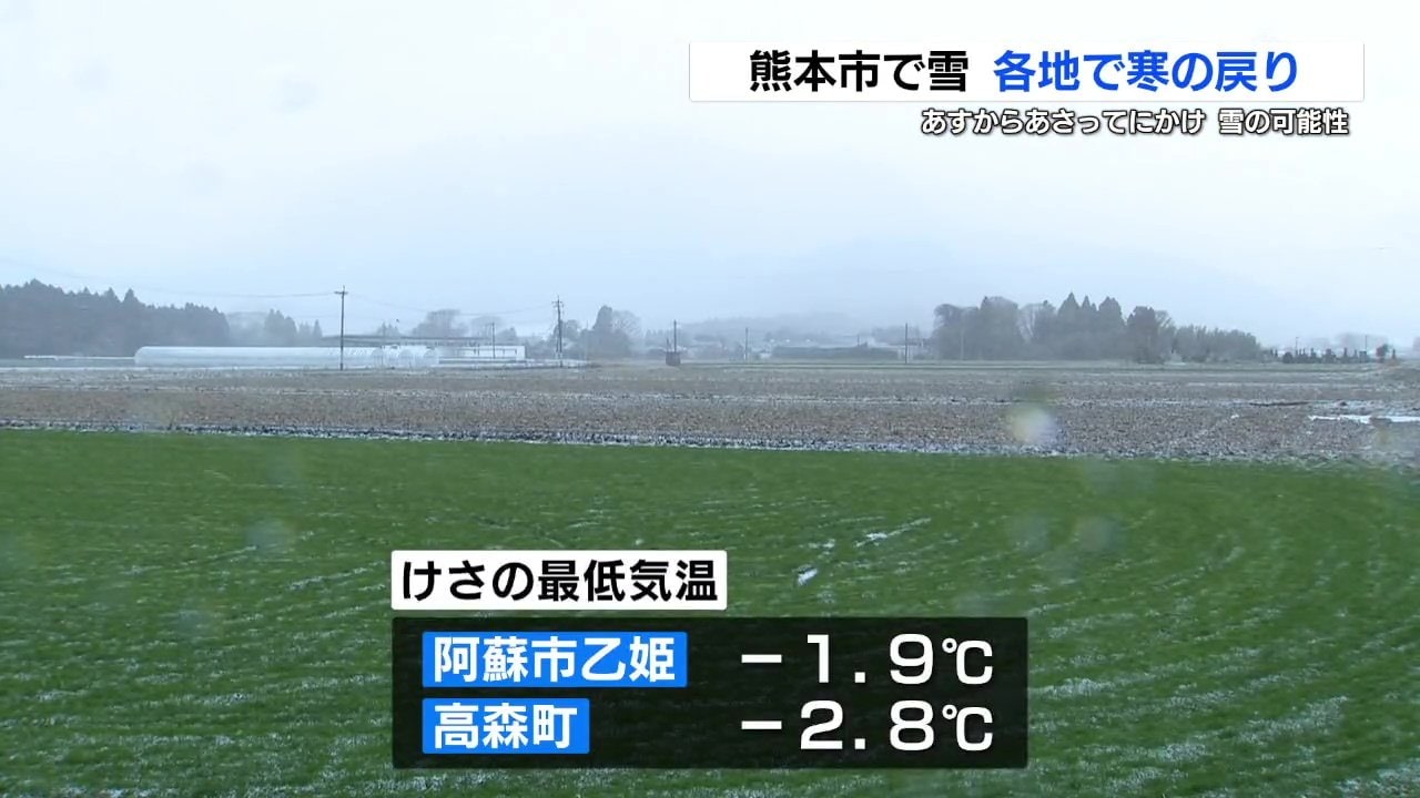 上空の寒気の影響で、けさ(17日)は熊本市などで季節はずれの雪が降りました。