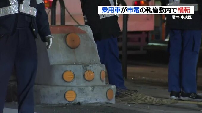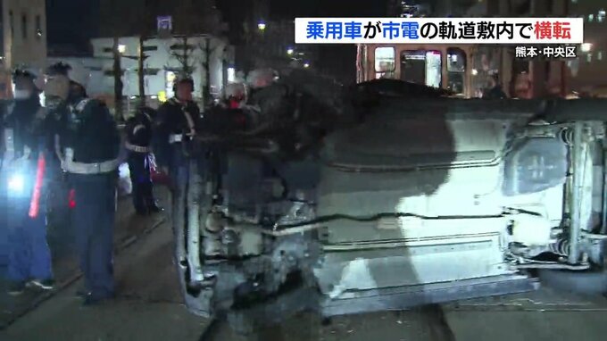 18日午後7時40分ごろ、熊本市中央区の国府(こくぶ)電停付近で乗用車が軌道敷内で横転しました。