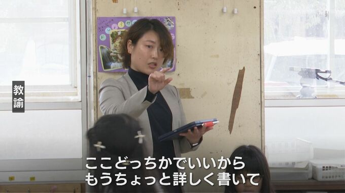 熊本市東区の小学校です。この日、1年生のクラスでは作文の授業が行われていました。使うのは「タブレット端末」です。