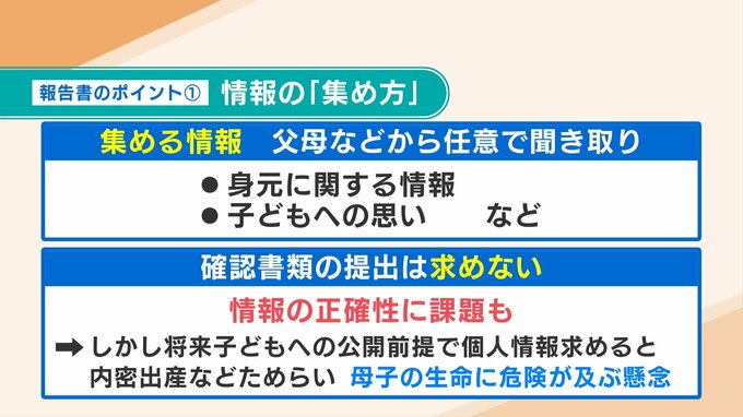 情報の正確性には課題は残りますが、将来子どもに公開する前提で提出を求めると、内密出産などをためらって、母子の生命に危険が及ぶことを懸念しました。
