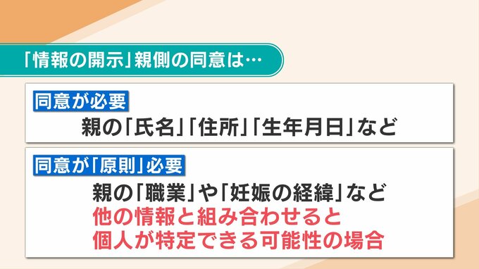 開示にあたって、氏名、住所、生年月日などは親の同意が必要です。また、職業や妊娠の経緯など他の情報と組み合わせると個人が特定できる可能性がある場合も、原則として親の同意が必要です。