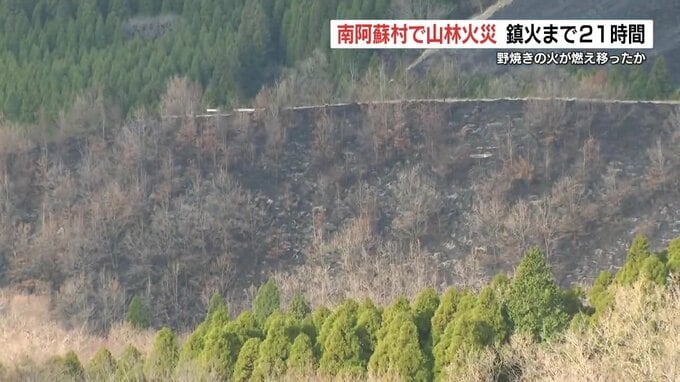 きのう(3月23日)熊本県南阿蘇村で発生した山林火災は、けさ、火が消えたのが確認されました。野焼きの火が燃え広がったとみられ、男性1人がけがをしました。