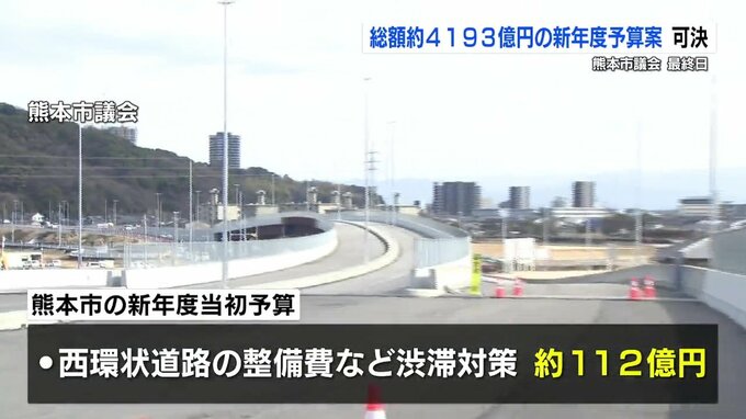 “渋滞対策に112億円・新庁舎関連に3.5億円” 総額4193億円の新年度予算案が可決 熊本市議会 2025年3月24日(月) 12:12 国内 熊本市の定例市議会はきょう(24日)、最終日を迎え、過去最大となる総額 約4193億円の新年度予算案が賛成多数で可決、成立しました。24日に可決した熊本市の新年度一般会計当初予算には、西環状道路の整備費など…