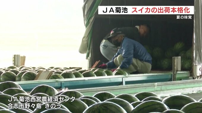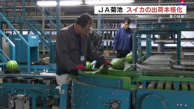 JA菊池によりますと、スイカは県内だけでなく関東や関西にも出荷され、6月下旬ごろまでに約36万玉、2400トンの出荷を見込んでいます。