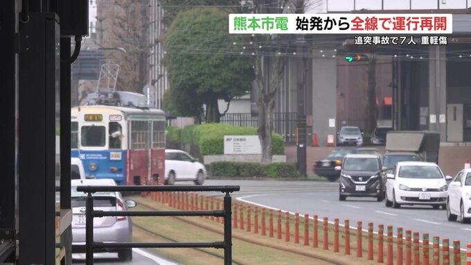 熊本市中央区の熊本城・市役所前電停で起きた追突事故から2日。7人が重軽傷を追った熊本市電が、きょう(27日)の始発から全線での運行を再開しました。