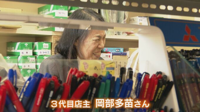 売店を営んで46年目の3代目店主、岡部多苗(おかべ たなえ)さん。その間に卒業した生徒は6000人を超えるといいます。