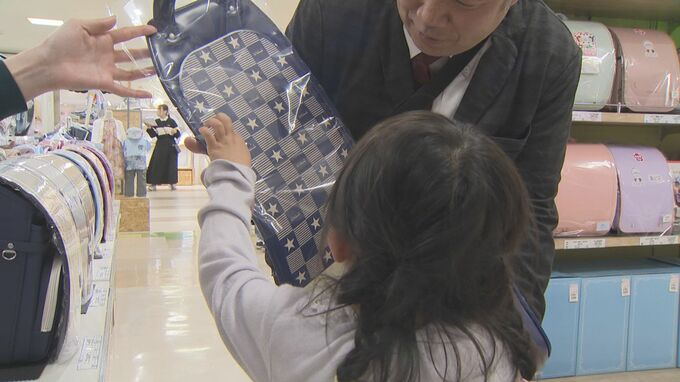 熊本市の鶴屋百貨店でランドセルの受注会が始まり、さっそく子ども達がランドセル選びにやってきました。