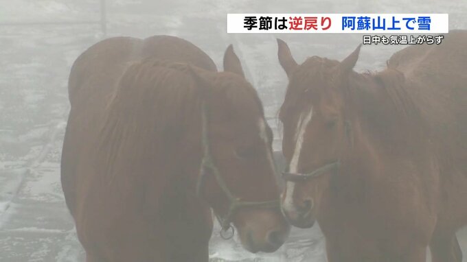 阿蘇山上で季節外れの雪 春の使者「つくし」が雪化粧 馬も体を寄せる寒さ 2025年4月15日(火) 12:08 国内 熊本県内は上空の寒気の影響で大気の状態が不安定となり、阿蘇山上では季節外れの雪が降りました。きのう14日から九州北部地方の上空に寒気が流れ込み、標高およそ1100メートルの草千里ではこの時期としては珍しく…