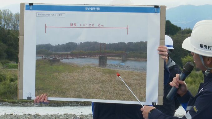 相良村には、清流として知られる川辺川に地元の人たちが使う歩行者専用のつり橋「新村橋(しんむらはし)」が架かっていましたが、2020年7月の豪雨で流失流出してしまいました。