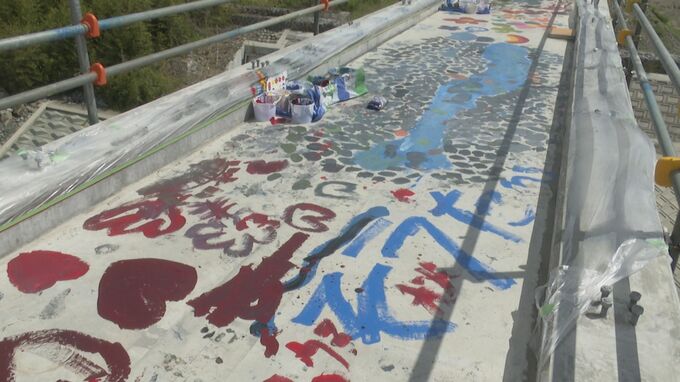 村はこの年からコンクリート製の橋の復旧工事を始めていて、今年(2025年)夏にも完成することから、新しい橋に親しみを持ってもらおうと、舗装前の路面に自由に絵を描くイベントを開きました。