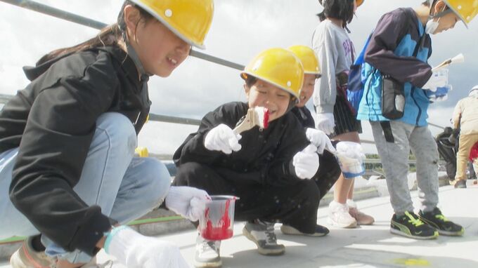 【写真を見る】つり橋いっぱいに描いたよ!子どもたちのペイント