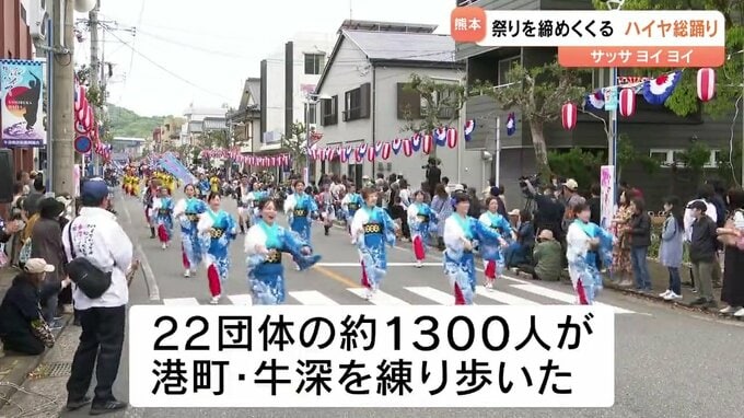牛深ハイヤ祭り クライマックスは「総踊り」 飛び入り丸もリズム良く 熊本県天草市 2025年4月20日(日) 18:09 国内 おととい4月18日からの牛深ハイヤ祭りは、クライマックスとなる総踊りが行われました。最終日の今日20日、目抜き通りで地方(じかた)による歌や三味線が弾かれると、千石船(せんごくぶね)を先頭にハイヤ総踊り…