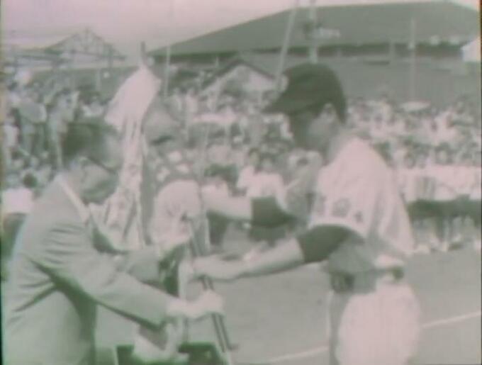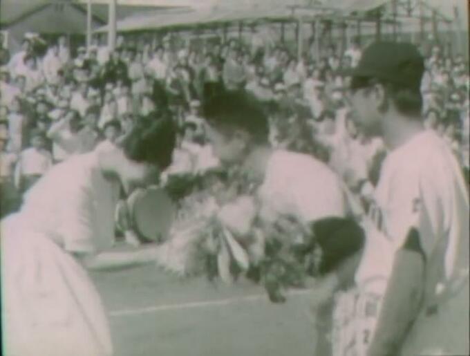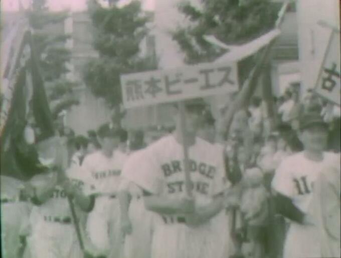 昭和36年(1961)6月、第5回熊本市民早起野球大会開会式の映像です。熊本市では、野球を愛する市民の親睦と親善の輪を広げ、スポーツを通して健康増進を図ることを目的に、昭和32年から毎年早起き野球大会を開催しています。現在は行われていない参加チームによるパレードの様子もあわせて、当時のニュースはこう伝えています。