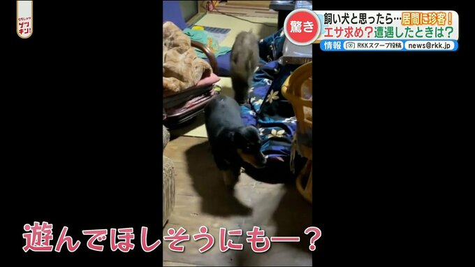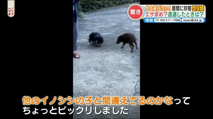 「そのまま逃げていくかなと思ったら、うちの犬とたわむれ始めた。他のイノシシの子と間違えてるのかなって。ちょっとビックリしました。うちの犬はちょっと迷惑っていう顔をしていました」