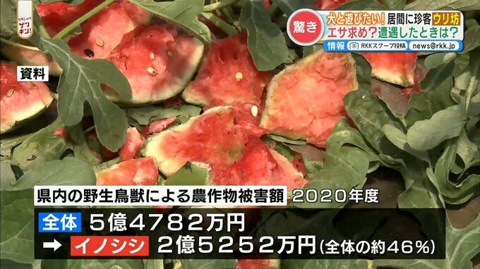 ただ、こうした思わぬ訪問は「微笑ましい」では済まされないケースも。県内の野生鳥獣による農作物の被害額はおよそ5億5000万円に上り、そのうち実に46%がイノシシによるものです。