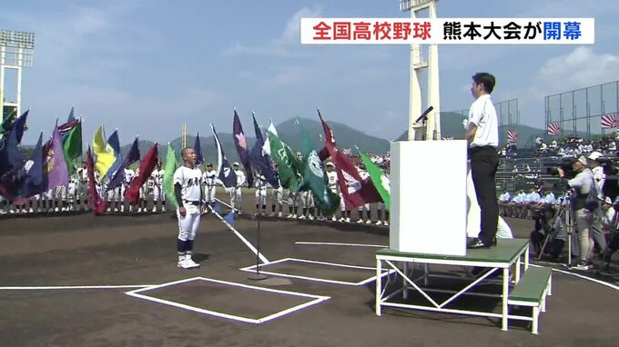 甲子園を目指し熊本県内「59校・52チーム」が熱戦 夏の高校野球熊本大会開幕 2025年7月5日(土) 18:00 国内 夏の甲子園を目指す全国高校野球の熊本大会が5日に開幕しました。熊本市のリブワーク藤崎台球場で行われた開会式には県内59校、52チームが参加し去年の優勝校、熊本工業から優勝旗が返還されました。そして選手を…