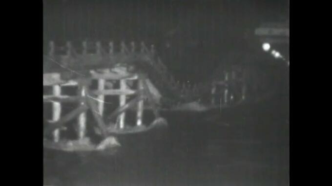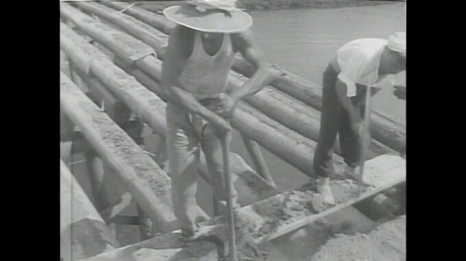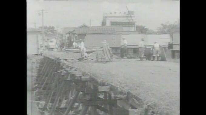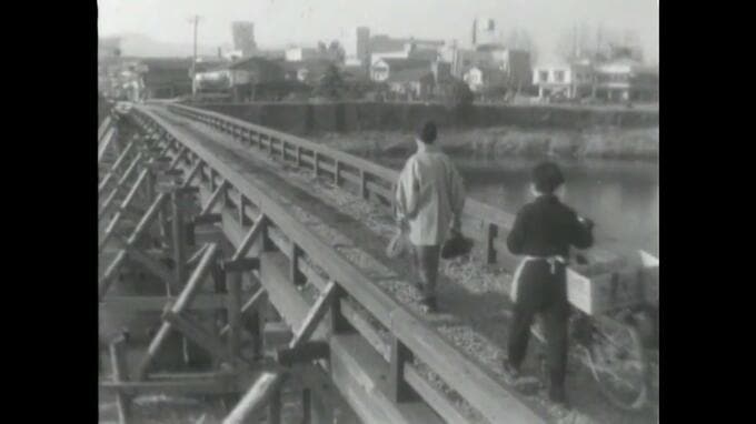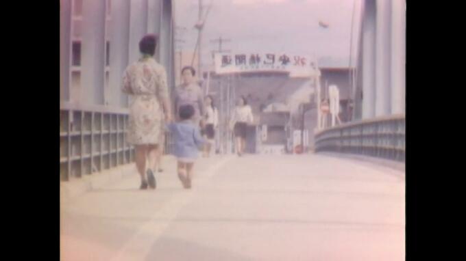 それから10年。昭和38年8月に、老朽化のため架替工事が始まりました。当時のニュースはこう伝えています。「新しく出来る橋は総工費520万円の木造橋で、10月終わりに完成の予定となっており、それまでは通行止めのため大甲橋か銀座橋に回ってもらうよう、市の土木部ではよびかけています」