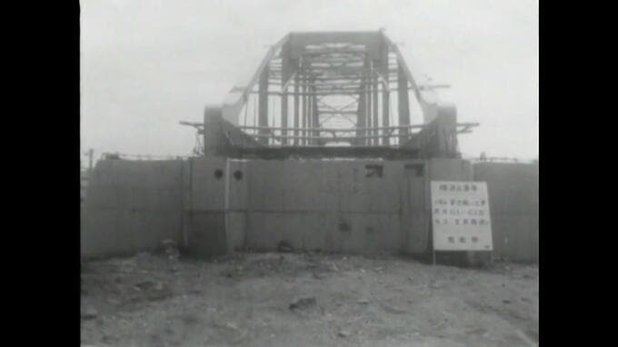 2年後の昭和42年(1967年)。新しい鉄橋を架ける工事が始まりましたが、その遅れが問題となりました。「架け替え工事が始まってから一年近くなるというのに、工事は一向に進んでいません。総事業費1億5000万円、幅4メートルの鉄橋を架ける計画ですが、現在は3つの橋脚が川の中にポツンポツンと出来ただけで、工事は中断。熊本市では『来年8月には見違えるような鉄の橋が出来るので、それまでご辛抱ください』と言っていますが、そのスローモー工事には地元から非難の声も上がっています」