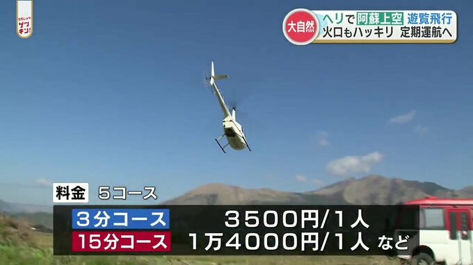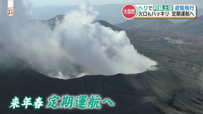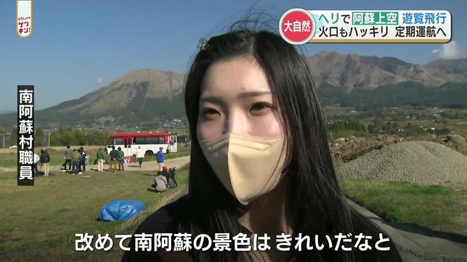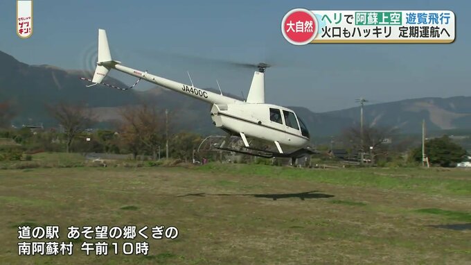 ヘリコプターに乗って雄大な阿蘇の景色を楽しめる遊覧飛行体験が始まりました。