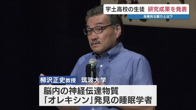 発表会の後に登場したのは、睡眠と目覚めを調節する脳内の神経伝達物質「オレキシン」を発見した世界的な睡眠学者、筑波大学の柳沢正史教授です。「睡眠の研究」という繋がりから講演が実現しました。