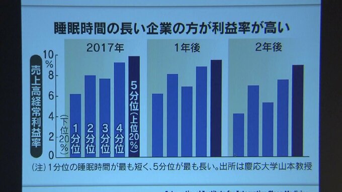柳沢教授は、睡眠不足によって感情のコントロールが難しくなり、イライラしやすくなることを研究データを交えて説明しました。「従業員がよく眠っている企業ほど利益率が高い」という研究結果もあるのです。