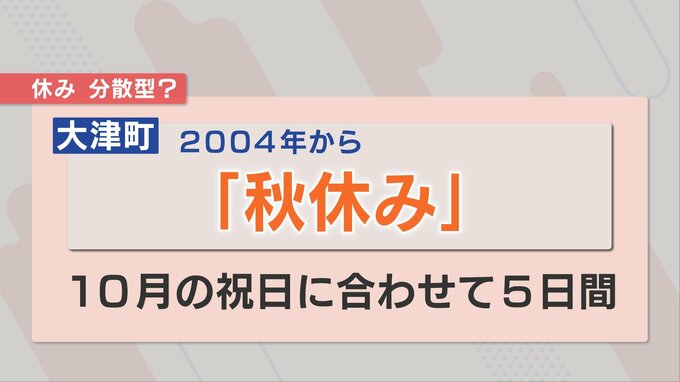 休みについては、自治体に決める権限があるので、休みを「分散させる」自治体もあります。例えば、大津町では、3学期制ではなく前期と後期の2学期制を採用していて20年以上前から「秋休み」を設けています。10月の連休に夏休みに減らした分の2日間を合わせて5日間にしています。