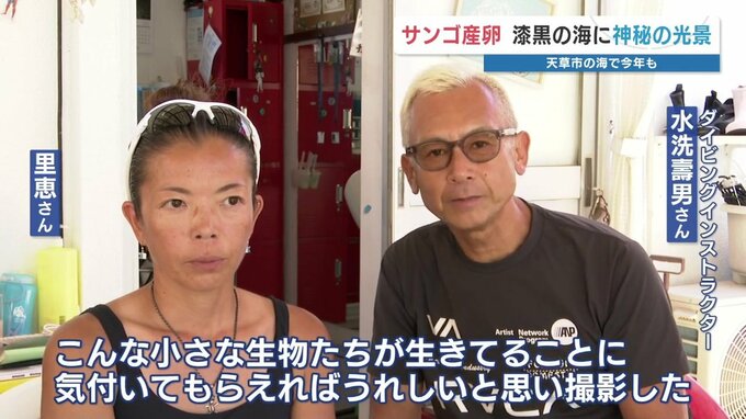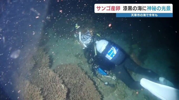 熊本県天草市でダイビングインストラクターをしている水洗壽男さんと里恵さんが、牛深の海で複数のサンゴが一斉に産卵する様子の撮影に挑戦し、見事、成功しました。