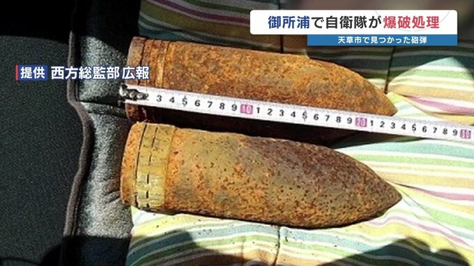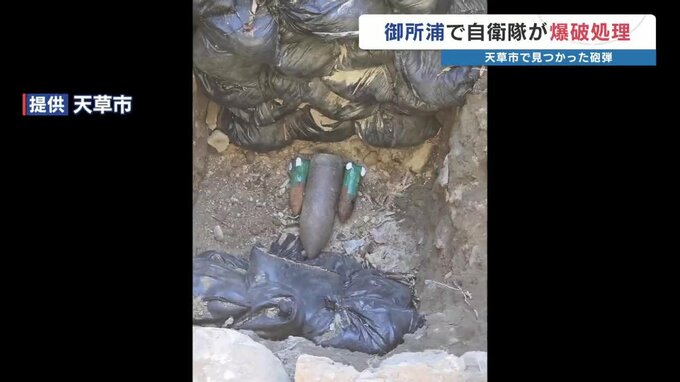 爆破された砲弾は7月14日、天草市御所浦町の住宅の倉庫で見つかったもので、長さは約24センチ、直径は7.5センチ程で、信管付きの旧日本軍製と確認されていました。