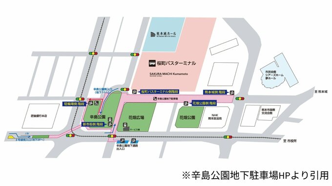 熊本市は、市が運営する辛島公園地下駐車場と地下自転車駐輪場を、8月1日(金)~9月30日(火)までの2か月間、閉鎖すると発表しました。