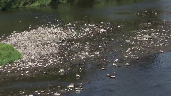 記者「連日厳しい暑さとなっている熊本市。暑さを和らげてくれるような雨も中々降りません。白川の水も少なくなっていて、川底があらわになり、その表面の石なども乾いてしまっています」