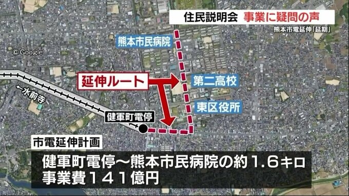路面電車・熊本市電の延伸計画の延期に関する住民説明会が開かれ、住民からは延伸の必要性そのものに疑問の声が相次ぎました。