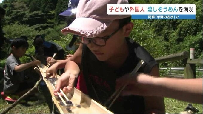 そりゃ うまかばい! 冷た〜い阿蘇の湧水で流しそうめん 流しブルーベリーも 2025年8月5日(火) 19:02 国内 夏休み中の子どもや定住外国人たちが、阿蘇の湧水で流しそうめんを楽しみました。「手野の名水」として知られる阿蘇市手野地区の湧水スポットで行われたのは、竹を使った長さ約20メートルの流しそうめんです。「道…