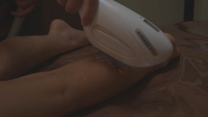 施術時間は約10分。光を当てた部分は2週間前後で自然に抜けるといいます。
