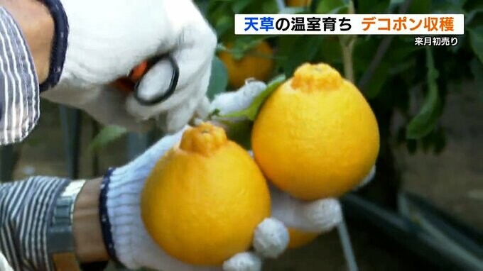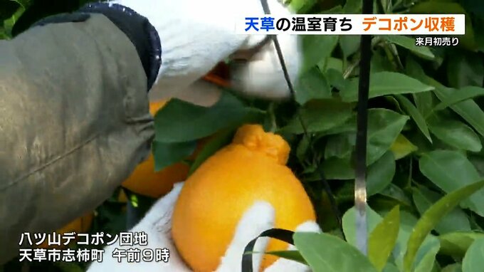 熊本県天草市では、12月の初売りに向け、ハウスデコポンの収穫が始まりました。