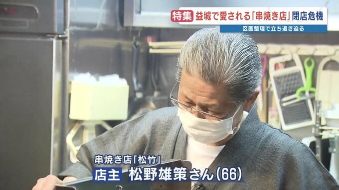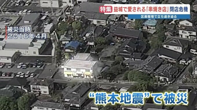 熊本地震で2度の震度7に襲われた益城町では、その復旧過程で県道の四車線化や区画整理が進んでいます。地元住民に愛され賑わう串焼き店が、存続の危機に直面しています。