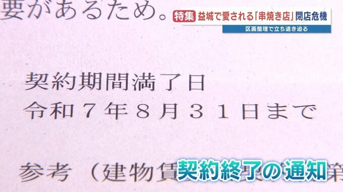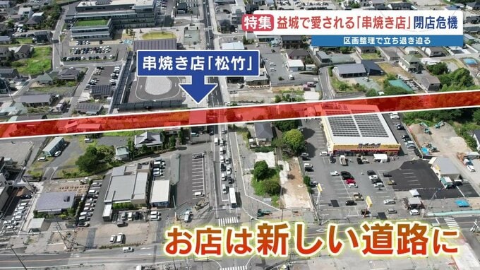串焼き店「松竹」が入るこの建物もその対象で、店がある場所に新たな道路が整備される事が決まっています。これには、常連客も複雑な心境です。