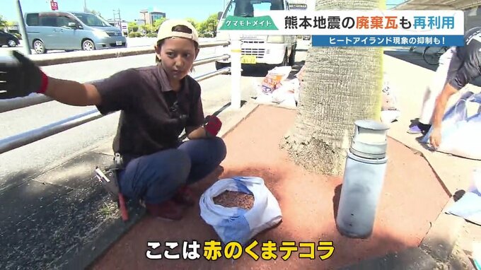 この日は、雑草対策で駐車場の植え込みに「くまテコラ」を敷き詰めます。高三潴さんは、娘の葵さんにくまテコラの可能性を広げてほしいと期待を寄せています。