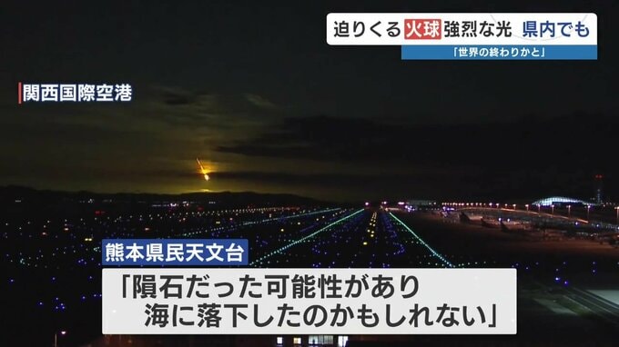 熊本県民天文台によりますと、「隕石だった可能性があり、海に落下したのかもしれない」ということです。