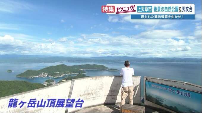 観光客を魅了するのは、星空だけではありません。ミューイ天文台から、歩いてすぐの場所にある展望台からは、天草諸島や八代海が一望できる大パノラマが広がっています。