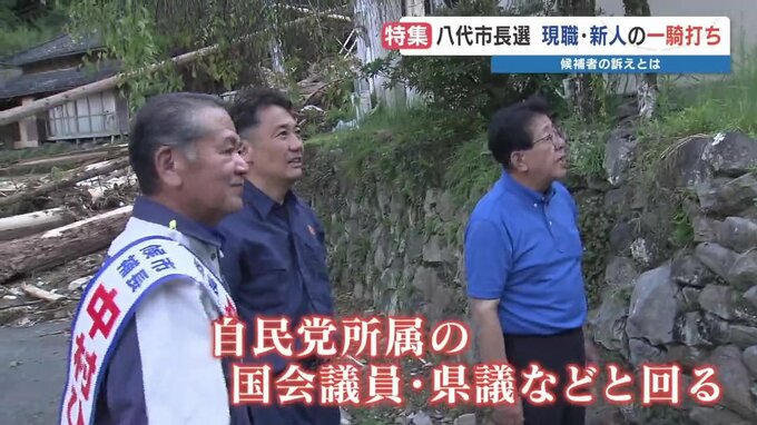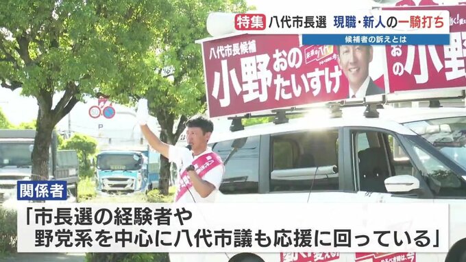 さらに、陣営関係者は「市長選の経験者や野党系を中心とした八代市議も応援に回っている」と話します。そんな小野候補が第一声の場所に選んだのは、大雨の被害が甚大だった千丁町でした。