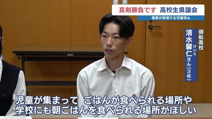 御船高校 清水馨仁さん「児童が集まってご飯が食べられる場所や、学校にも朝ごはんを食べられる場所が欲しい」