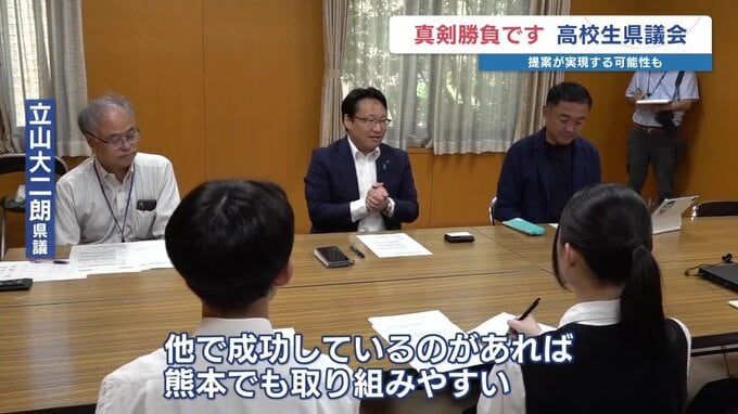 本番の1か月ほど前、高校生たちはどんなことを議会で提案するか現職の県議会議員に考えを伝えました。御船高校のメンバーは・・・
