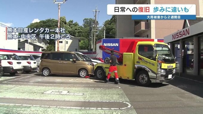 一方、熊本日産レンタカー本社(熊本・中央区)では約250台のうち60台ほどが水没し、今日26日から運び出しが始まりました。