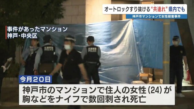 神戸市のマンションで女性が殺害された事件は、犯人がオートロックの扉が閉まる前にマンションに入ったとみられています。