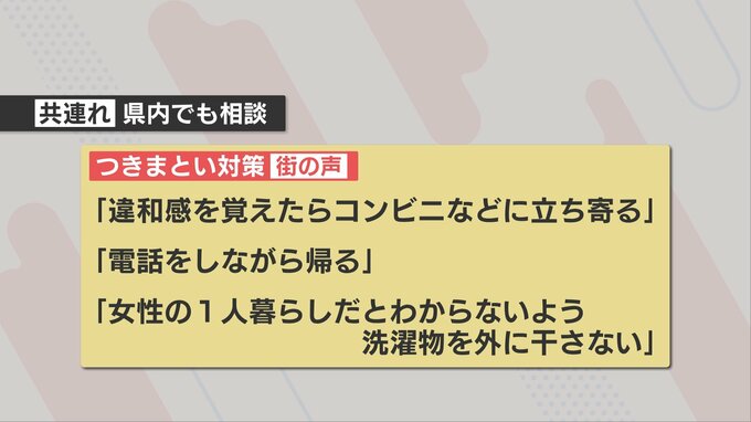 話を聞いた人の中には「違和感を覚えたらコンビニなどに立ち寄るようにしている」という人や「電話をしながら帰る」「女性の一人暮らしだとわからないよう、洗濯物を外に干さない」などと話す人もいました。