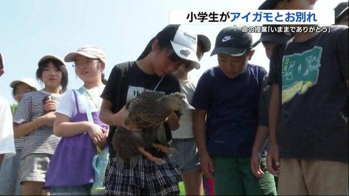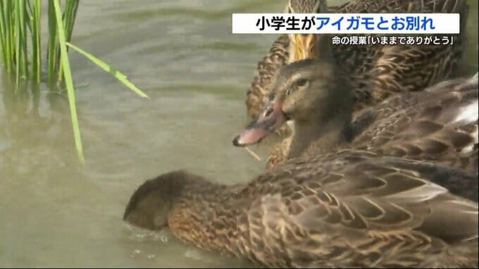 アイガモ農法に取り組んでいる熊本県人吉市の小学校で、稲の生育に一役買っていたアイガモとの別れの日を迎えました。